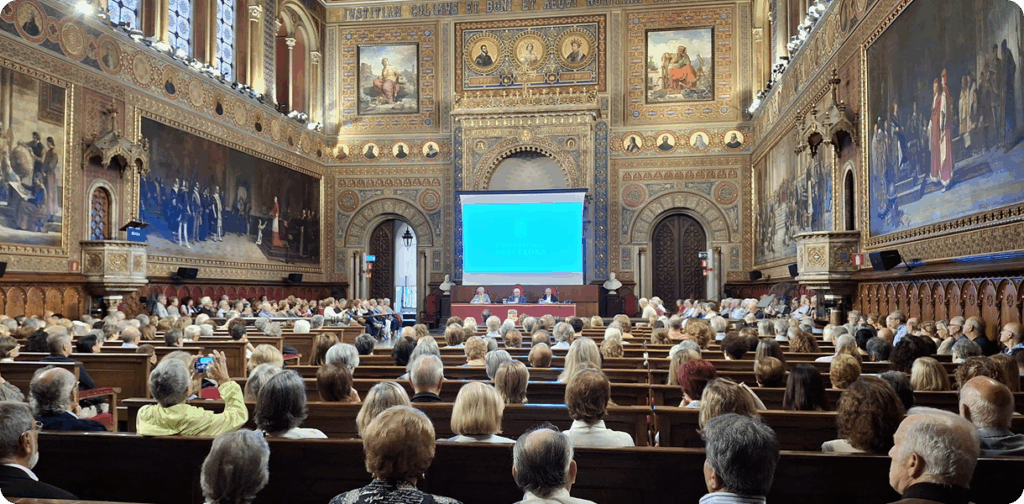 El 3 d’octubre de 2024, s’ha celebrat l’acte d’inici del curs 2024-2025 al Paranimf de la Universitat de Barcelona, presidit pel Vicerector de Cultura i Patrimoni, Dr. Agustí Alcoberro. L’acte ha comptat amb la presència de professors, i membres associats de les Aules, consolidant així el sentiment de pertinença i col·laboració.
